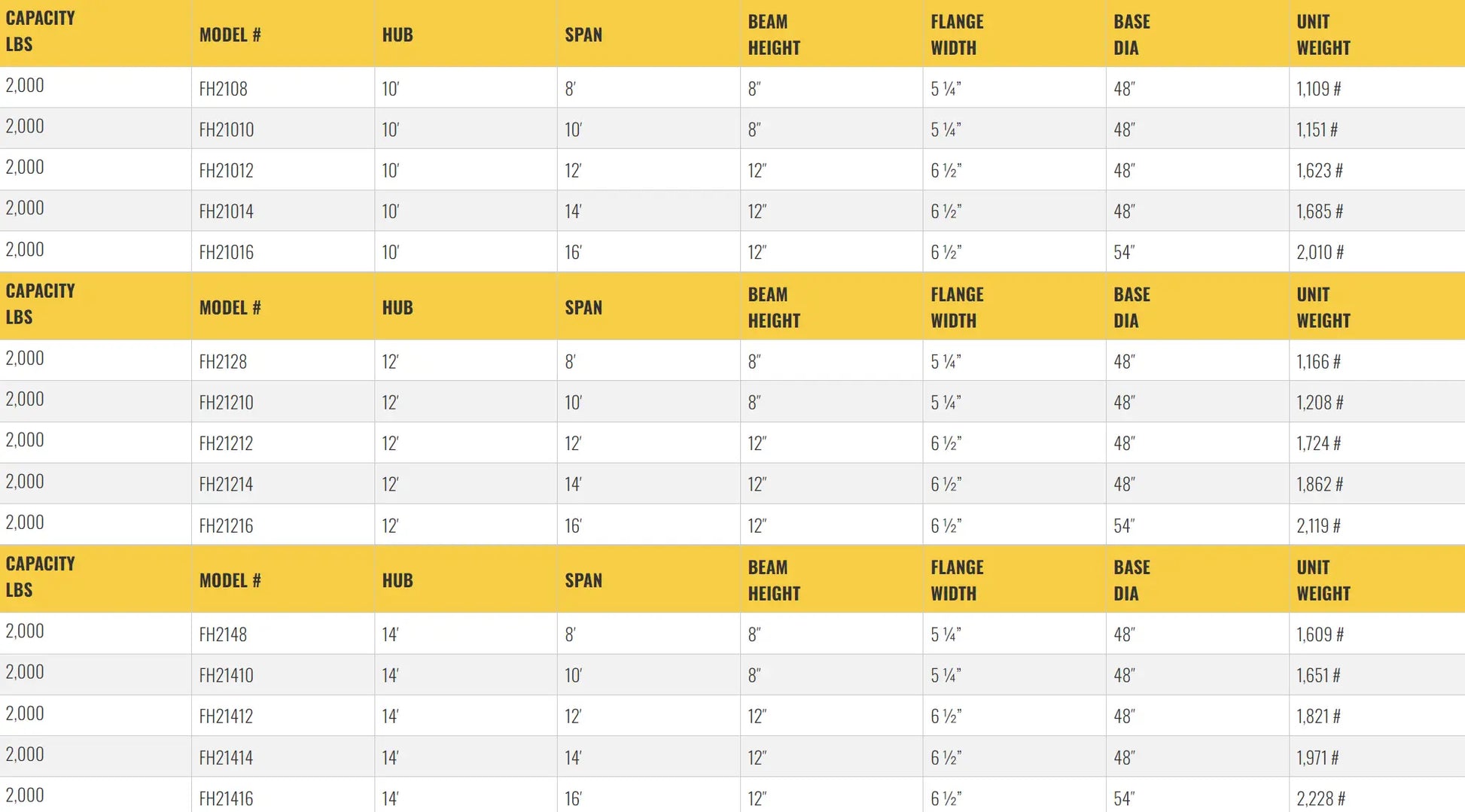 All Lift Cranes FH-Series Heavy Duty Foundationless Jib 1/2 Ton Capacity 10 to 14 HUB