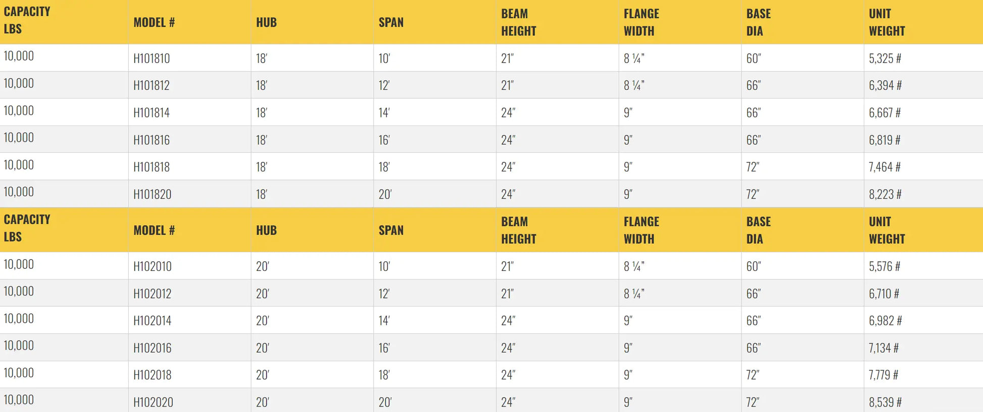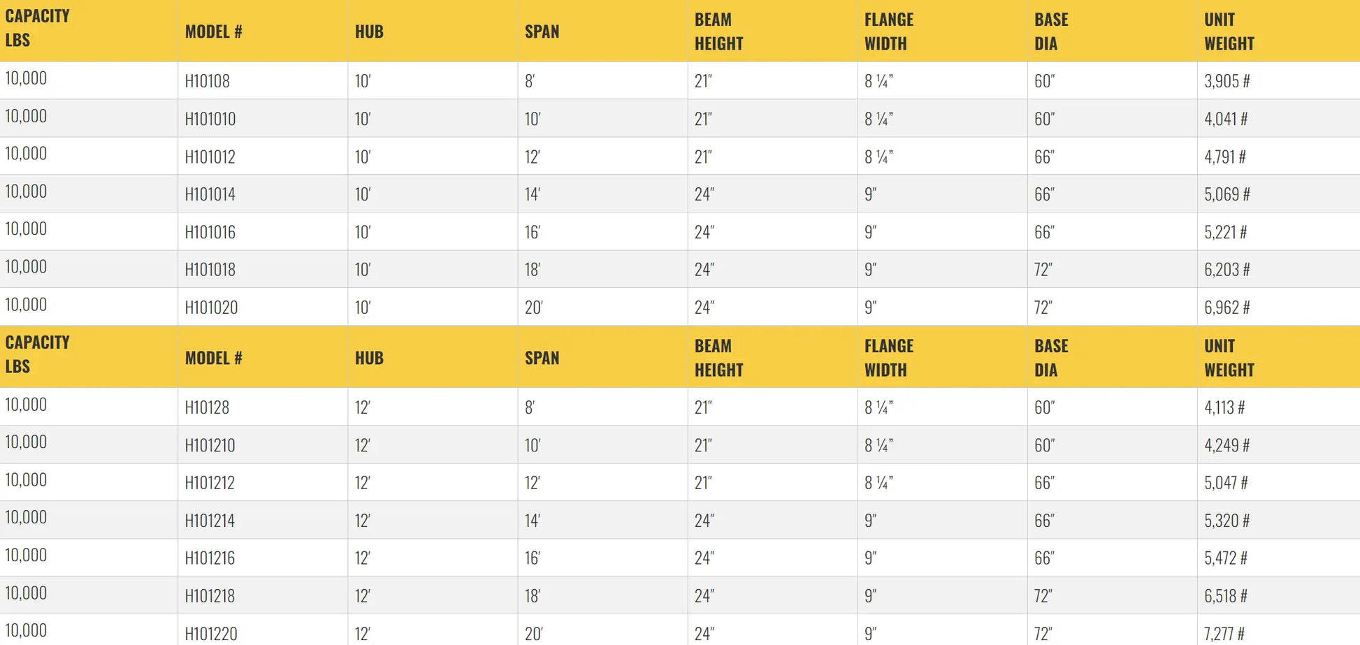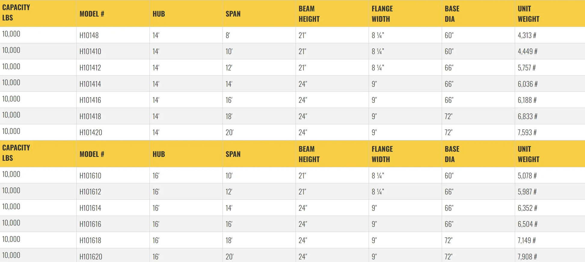 All Lift Cranes H-Series Heavy Duty Floor Mounted Jib Crane 5 Ton Capacity 10 to 14 HUB