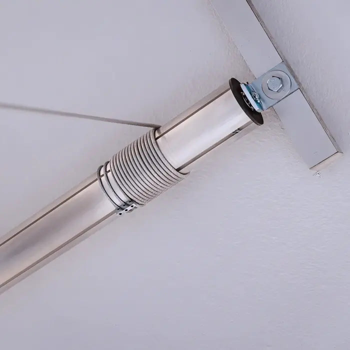 Built from reinforced steel C-channel frames and equipped with galvanized wire mesh decking, the Auxx-Lift delivers stability and durability. The dual synchronized IP44 motors provide smooth, level lifting while maintaining a compact footprint that integrates neatly into your ceiling.