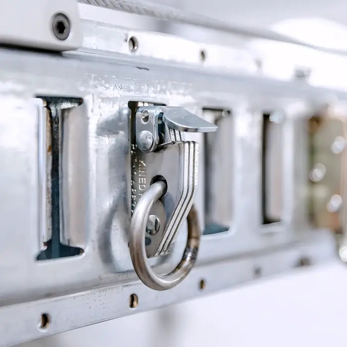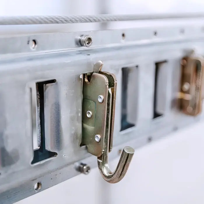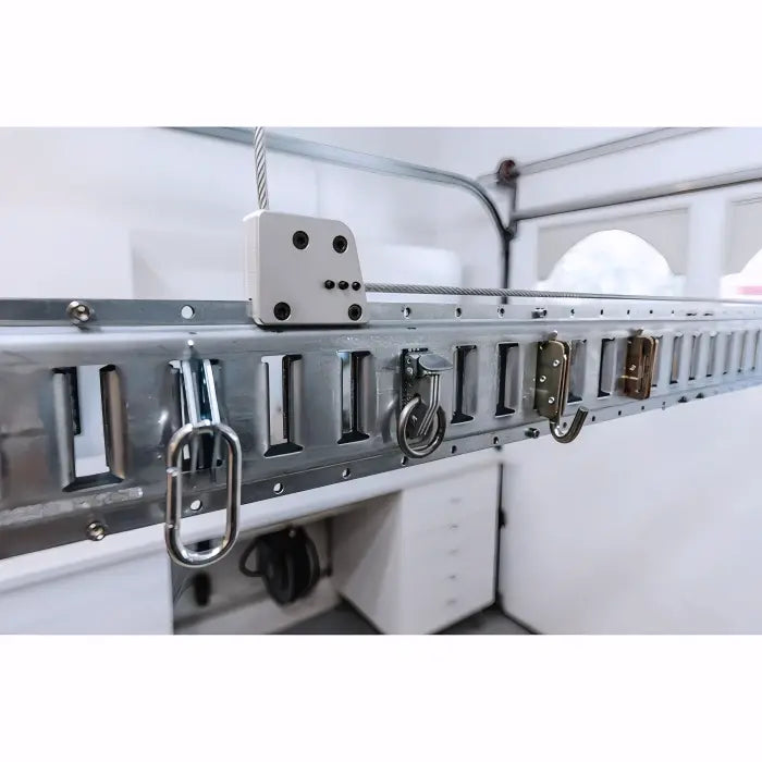 Made from galvanized steel, the E-Beam resists rust, scratching, and long-term wear. This design is inspired by load-locking rails used in the trucking industry, offering professional-level strength and security for overhead storage.