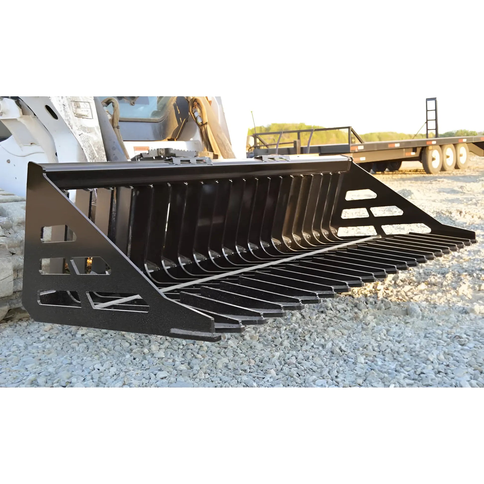 - Heavy-Duty Construction: Constructed from 3/8" thick steel, the Loflin Skid Steer Rock Bucket is built to withstand the most demanding applications, ensuring long-lasting performance.